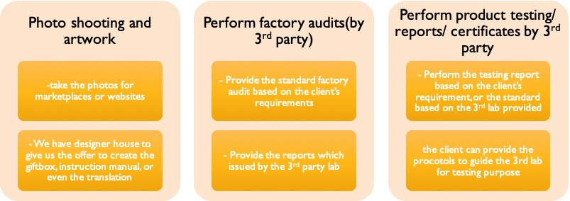 If the client wants to have own brand to sell in the market, we can offer trademark registration