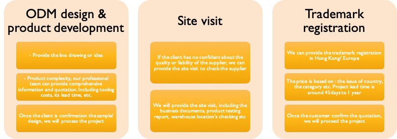 If the client wants to have own brand to sell in the market, we can offer trademark registration